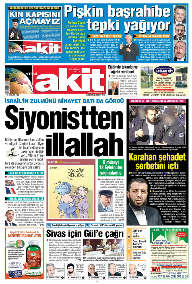 Gazete Manşetleri - 8 Ağustos 2012 Çarşamba