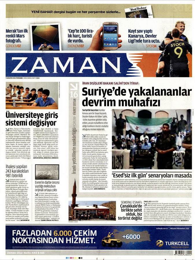 Gazete Manşetleri - 9 Ağustos 2012 Perşembe