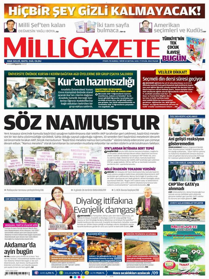 Gazete Manşetleri - 9 Eylül Pazar