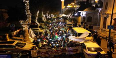 Gazze Dayanışma Platformu'nun çağrısıyla teravih namazını ardından Fatih Camiinden Saraçhane'ye yürüyüş gerçekleştirildi.