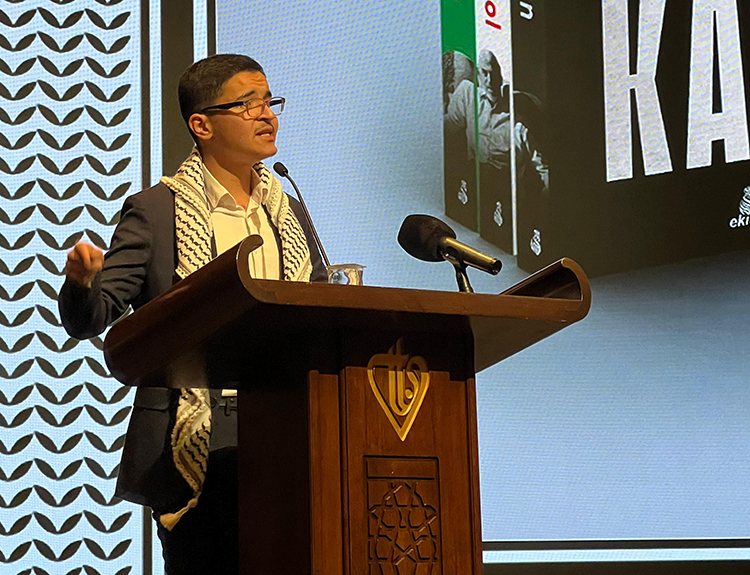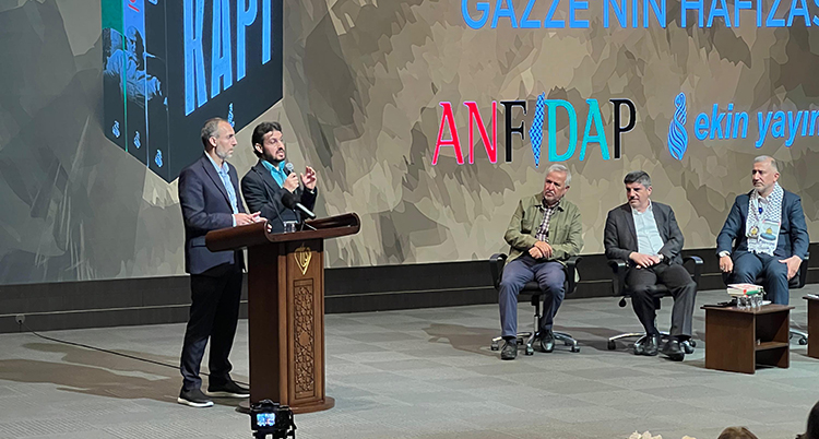 ANFİDAP adına selamlama konuşması yapan Platform dönem sözcüsü Mustafa Eminoğlu, kalıcı mücadelenin yazı ve eğitim yoluyla mümkün olduğunu, Kızıl Kapı’nın da bu kalıcı işlerden biri olduğunu ifade etti. İsrail’in dokunulmazlığı mitinin Aksa Tufanı ile yıkıldığına dikkat çeken Eminoğlu, İsrail’in birkaç yıl içinde tarihin çöplüğündeki yerini alacağını belirtti.