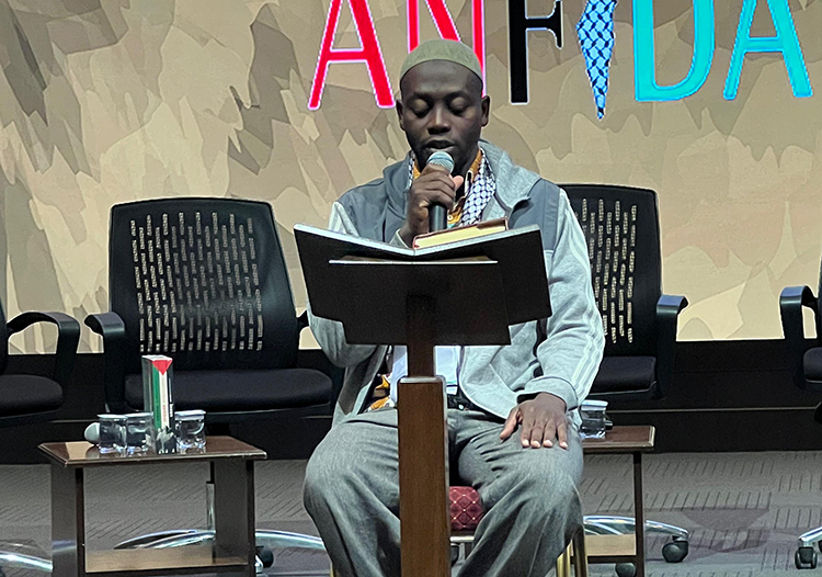 Aksa Tufanı sonrasında Ankara’da kurulan ve 30’dan fazla STK’nın bir araya gelmesiyle oluşan Ankara Filistin Dayanışma Platformu (ANFİDAP)ile Ekin Yayınları organizasyonuyla düzenlenen ve sunuculuğunu Özgür-Der Ankara Şubesinden Abdullah Buldur’un yaptığı program Kuran tilaveti ve selamlama konuşmaları ile başladı.