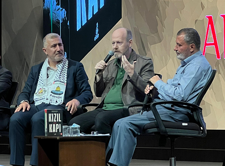 Programda, yakın zamanda esir takası ile serbest bırakılan ve salonda büyük bir coşkuyla karşılanan Filistinli Ebu Eyyub ise yaptığı selamlama konuşmasında "Kızıl Kapı bizim Filistin’de yürüttüğümüz mücadelenin bir parçasıdır." ifadesini kullandı.