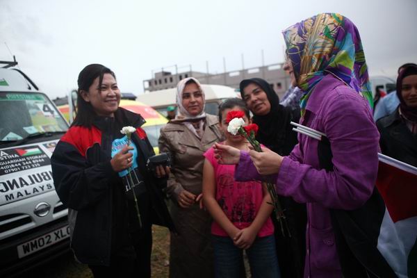 Aktivistleri, Furkan Doğan'ın ağabeyi Mustafa Doğan ile dedesi Mustafa Doğan karşıladı. Filistin'e yardım götüren konvoydaki gönüllüler, Furkan'ın dedesi ve ağabeyiyle tokalaşarak hem başsağlığı diledi, hem de ayaküstü sohbet etti.