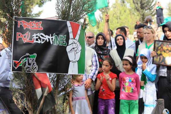 Gazze konvoyunda bulunan aktivistler, Türkiye'den ayrılmadan önce Adana'ya uğrayarak Mavi Marmara şehidi Çetin Topçuoğlu'nun mezarını ziyaret ettiler.