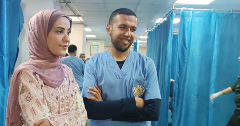 Gazze'de Şifa Hastanesi'nde hemşirelik yapan iki genç hastanede dünya evine girdi