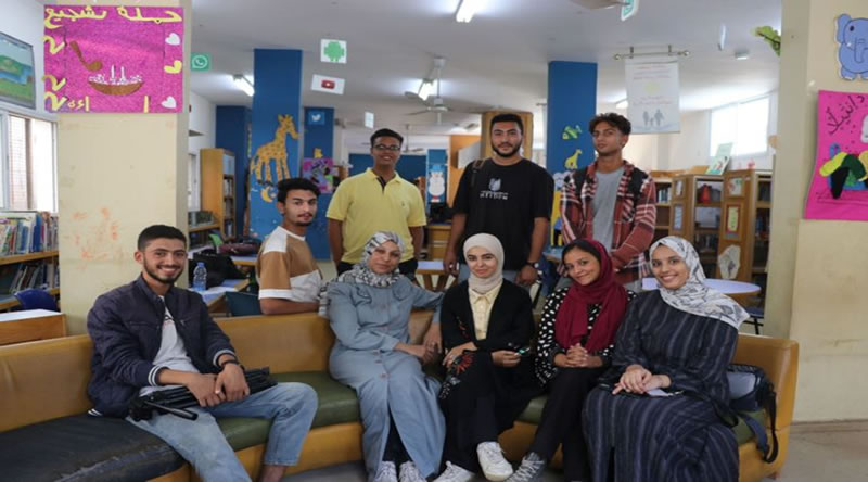 Yazarın Gazze'deki Maghazi mülteci kampında bulunan Maghazi kütüphanesine yaptığı son ziyaret sırasında meslektaşlarıyla birlikte çekilmiş bir fotoğrafı