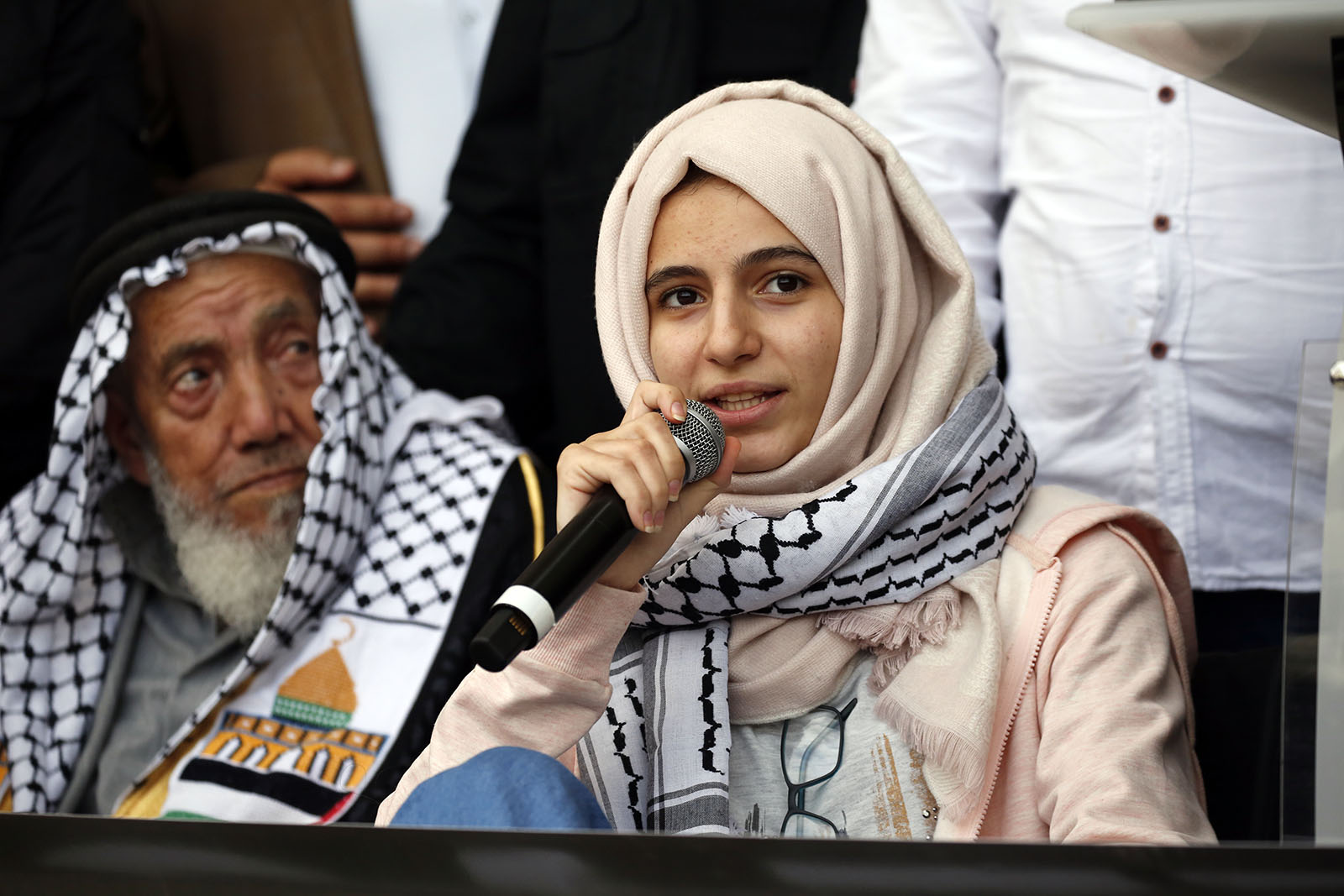 Bülent Yıldırım’ın ardından konuşan Meryem Ebu Matar da İşgalci İsrail’in çocuklardan ve taşlardan korktuğunu ifade ederek İsrail’i tanımadıklarını söyledi. “İşgalciler, ne yaparlarsa yapsınlar hedeflerini başaramayacaklar” diyen Ebu Matar, şöyle konuştu: