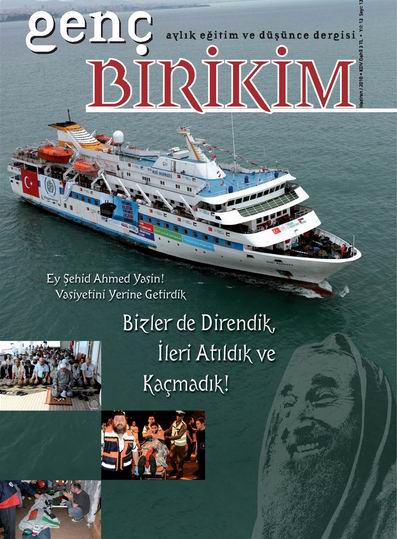 Genç Birikim dergisi Haziran 2010 sayısında Filistin'e insani yardım için seferber olan Mavi Marmara gemisini kapak yapmış. Genç Birikim bu sayısında şehid Şeyh Ahmet Yasin'in çağrısına bir icabet olarak ele aldığı yardım seferberliğini ve bu uğurda sergilenen cesaret ve şehadetin geniş bir analizine yer veriyor. Derginin sunuş yazısını okuyanlarımızla paylaşmak istedik: