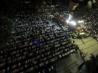 Mısır’daki katliamlara karşı etkinliğin devam ettiği Saraçhane’de Suriye'de kimyasal katliamda ölenler için gıyabi cenaze namazı kılındı.