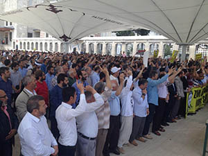 Başta Diyarbakır’da olmak üzere çeşitli bölgelerde PKK’lı gruplar tarafından katledilen Müslümanlar için Cuma namazı sonrası Fatih Camii’nde gıyabi cenaze namazı kılındı.