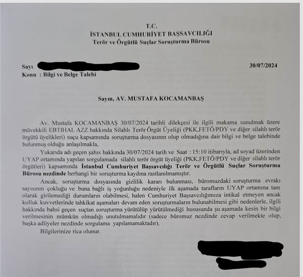 Hakkında hiçbir soruşturma bulunmayan, hatta soruşturma bulunmadığına dair “Temiz Kâğıdı” bulunan ve Göç İdaresi tarafından hakkında “Sınır Dışı Edilmesi Kararı Alınmasına Yer Olmadığına” dair karar bulunan Ebtıhal AZZ’ın ve 3-4 yaşlarındaki 4 çocuğun Çatalca/İnceğiz GGM'de tutulması büyük bir hukuksuzluk ve zulümdür.
