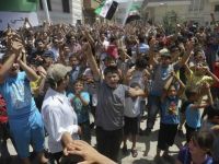 Şam'ın Midan bölgesinde dün yapılan Cuma eyleminde "Allah Hür Suriye Ordusunu Korusun!" sloganları