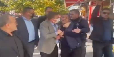 İYİ Parti'nin HDP ile anılmasına tepki gösteren şahsa, İYİ Parti Milletvekili Lütfü Türkkan sinkaflı küfürler etti. O anlar videolara yansırken polis tepki gösteren adamı alandan uzaklaştırdı.