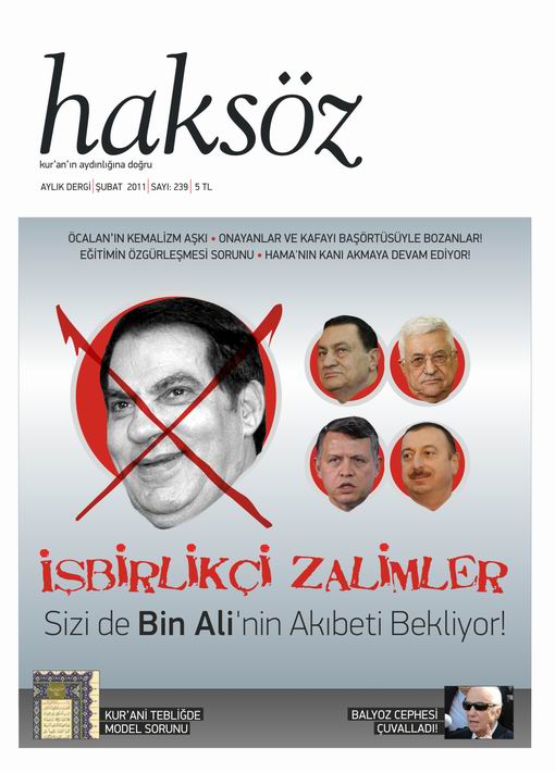 Haksöz Dergisi, Şubat 2011 tarihli 239. Sayısında Tunus ve Mısır halkının isyanını manşete çıkardı: “İşbirlikçi Zalimler! Sizi de Bin Ali’nin Akıbeti Bekliyor!”