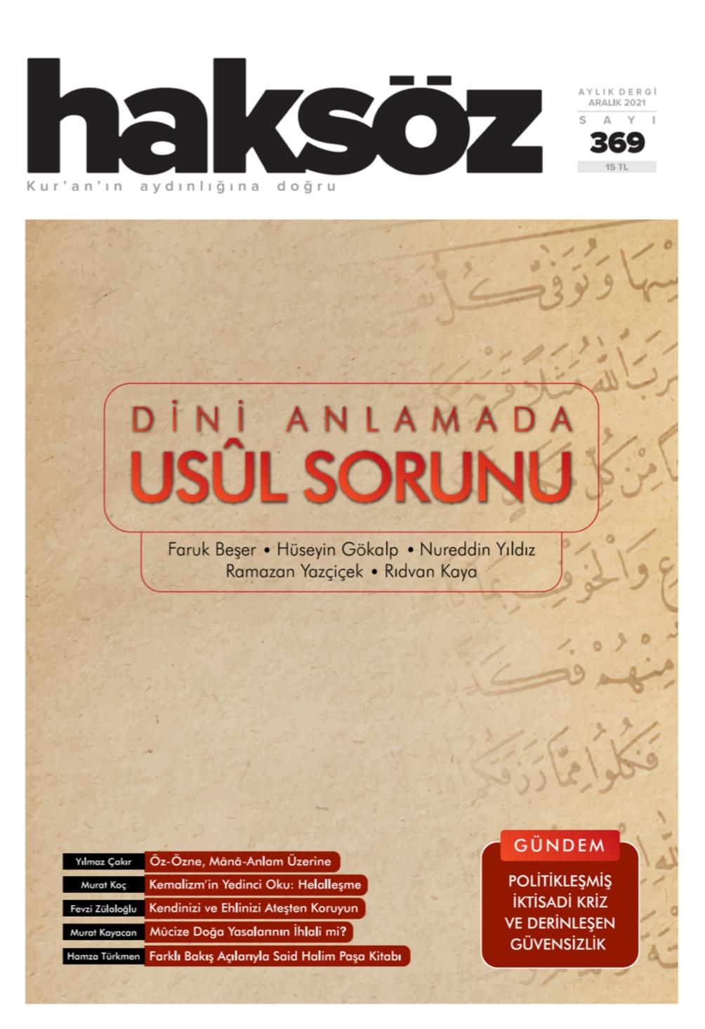 “Kur’an’ın aydınlığına doğru” şiarıyla yayınını sürdüren Haksöz dergisi Aralık 2021 tarihli 369. sayısında “Dini Anlamada Usûl Sorunu” dosyası hazırladı.