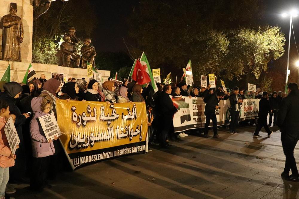 Ümit Kudbay’ın yönettiği eylemde “Gazze’de, Halep’te Direniş Her Yerde!”, “Katil Rusya, Katil İran!”, “Katil Esed Hesap Verecek!”, “Yaşasın Suriye Direnişimiz!”, “Yaşasın İslami Mücadelemiz!” ve “Yaşasın Ümmet Dayanışması!” sloganları atılırken “Gazze’de Halep’e Direnen Mücahitlerin Yanındayız!”, “Suriyeli Kardeşlerimizin Direnişine Bin Selam!”, “Yaşasın Suriye Direnişimiz!”, “Söyleyin Ölmedik Biz Daha!” ve “Halep Kuşatmasını Kıran Mücahitler Onurumuzdur!” yazılı pankart ve dövizler açıldı.