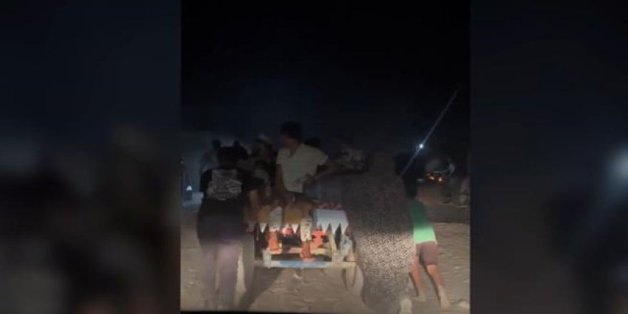 Kadın ve çocukların çoğunlukta olduğu Filistinliler, gecenin karanlığında toprak bir yoldan bölgeden ayrılmaya çalıştı.