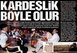 Hatay'da 'Suriyeli mültecilerden rahatsızlık duyulduğu' iddiası bazı kesimler tarafından bir süredir dile getirilse de gerçeğin böyle olmadığını gösteren birçok olay yaşanıyor. Mekke'den hicret eden Muhacirlere, Medineli Ensarın sahip çıkması gibi Hataylılar da, Esed'in zulmünden kaçarak Türkiye'ye sığınan Suriyelilere evlerini açıyor, yiyeceklerini paylaşıyor. Ensar-Muhacir kardeşliğinin en güzel örneklerinden biri Hatay'ın Yayladağ ilçesine bağlı Güveççi köyünde yaşanıyor. Nüfusu 550 olan köyün halkı, 550 Suriyeliyi de misafir ediyor. Son bir ay içerisinde Suriye'den 113 aile geldiğini anlatan Köy muhtarı Cemil Utanç, 'Onlar bizim misafirimiz istedikleri kadar kalabilirler' diyor.