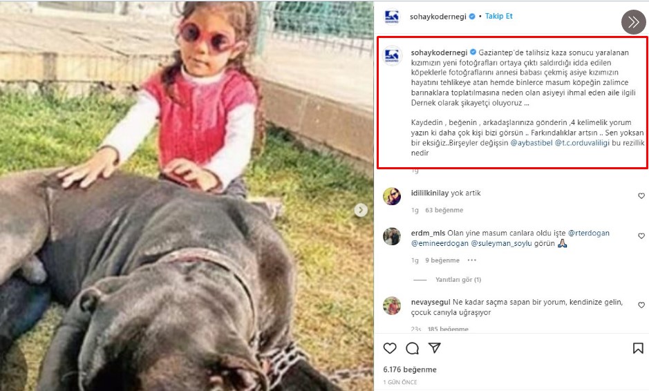 Sohayko adlı derneğin sosyal medya açıklamalarında, Asiye'nin köpekle daha önce çekildiği fotoğrafları olduğu belirtilerek, aileden şikayetçi olunması gerektiği ifade edildi.