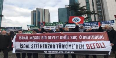 Özgür-Der’in çağrısıyla bir araya gelen Müslümanlar, Siyonist rejimin Cumhurbaşkanı Herzog’un Türkiye ziyaretini protesto etti!