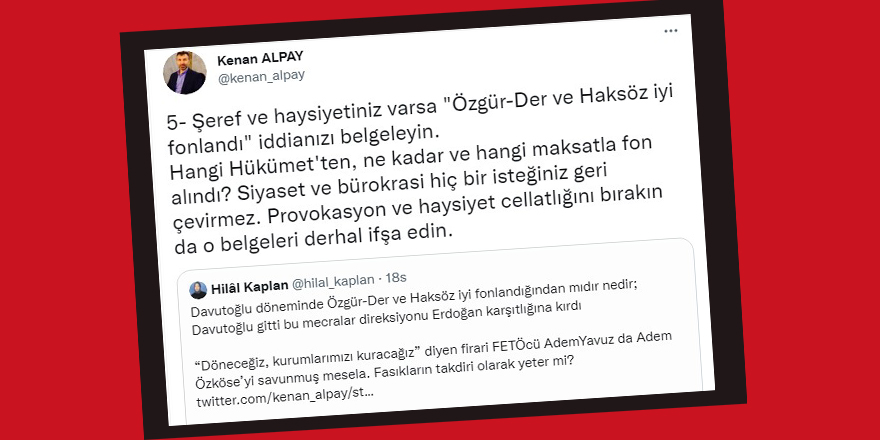 Kenan Alpay’dan Hilal Kaplan’a: “Haksöz fonlandı” iddianı kanıtla!