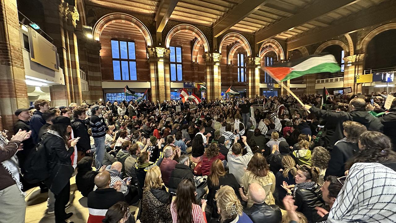 Hollanda'daki tren istasyonlarında, katil İsrail'in saldırıları ve Gazze'de bir yıldır süren soykırımı protesto etmek ve Filistin'e destek vermek amacıyla oturma eylemleri düzenlendi.