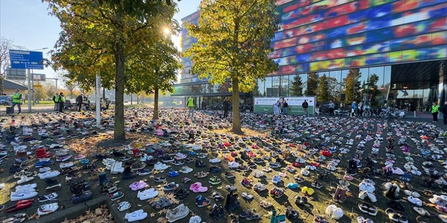 Van der Most, Gazze ve Batı Şeria'da İsrail tarafından çocukların yanı sıra gazetecilerin de öldürüldüğünü belirterek, "Mediapark Meydanı'na bıraktığımız ayakkabıların yanı sıra, farklı yayın kuruluşların binasının önünde, son 13 ayda öldürülen 194 Filistinli gazetecinin anısına fotoğraflarını sergiledik. Bu gerçekten benzeri görülmemiş bir rakam. Geçen hafta sonu 4 Filistinli gazeteci daha öldürüldü." dedi.
