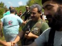 İdlib kırsalındaki Özgür Suriye Ordusu kamplarına giden Filistinliler, Suriyeli savaşçılara yardım götürdü.