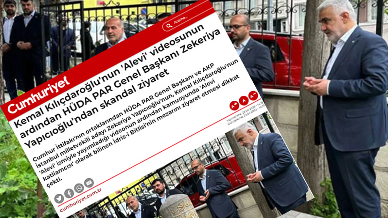 Cumhuriyet gazetesi “HÜDA PAR Genel Başkanı ve AK Parti İstanbul milletvekili adayı Zekeriya Yapıcıoğlu'nun Kemal Kılıçdaroğlu'nun 'Alevi' ismiyle yayımladığı videonun ardından kamuoyunda 'Alevi katliamcısı' olarak bilinen İdris-i Bitlisi'nin mezarını ziyaret etmesi dikkat çekti.” şeklinde verdi.