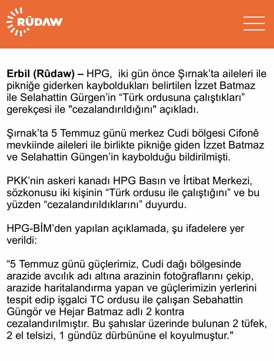 05.07.2020 Pazar günü aileleriyle Cudi dağı eteklerinde bulunan Cevizdüzü (Cifane) köyüne pikniğe giden Selahattin Güngen (38) ve Üzeyir Batmaz'ın (49) kaybolmasına ilişkin basın açıklamasıdır. pic.twitter.com/1Sg3jsAEaJ