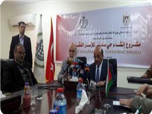 Müfid El-Hasayine ile Mehmet Kaya Gazze'de fakir aileler için konut inşası protokolünü imzaladı.