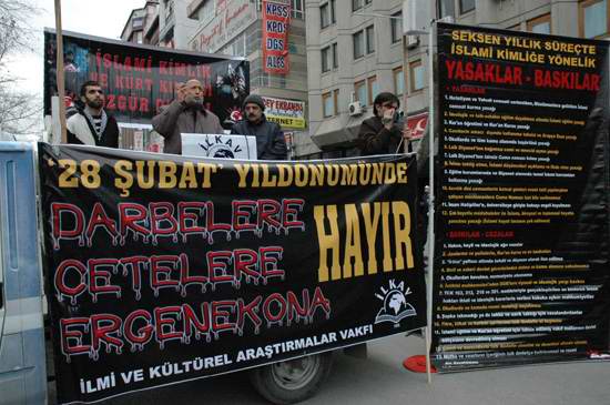 İLKAV adına Abdurrahman Çeliker'in okuduğu basın açıklamasında, 28 Şubat post modern darbe sürecinin; silahlı bürokrasi tarafından, yargıyı, medyayı ve üniversiteleri de brifinglerle yönlendirip kullanarak, bütün bir ülkeyi ablukaya almak, halkın irade ve taleplerini işlevsiz kılmak hedeflerini güttüğünü belirtti.