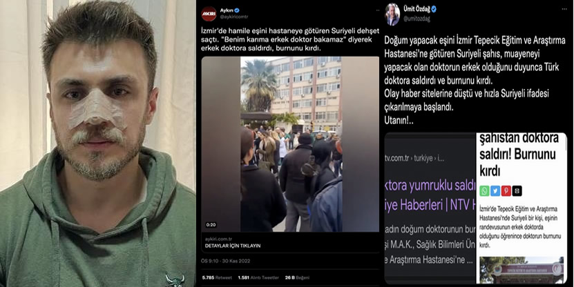 Irkçılar İzmir'de "Karıma erkek doktor bakmasın" diyerek bir doktora saldıran kişinin Suriye uyruklu olduğu ileri sürmüştü. Bunun klasik ırkçı iftirası olduğu ortaya çıktı.