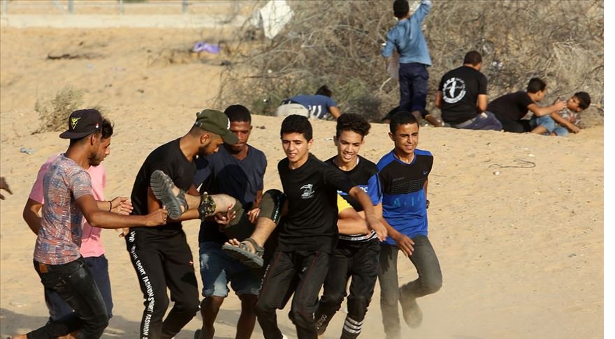 İşgalci İsrail askerlerinin Gazze sınırındaki Büyük Dönüş Yürüyüşü gösterilerine katılan Filistinlilere müdahalesi sonucu 48'i gerçek mermiyle olmak üzere 74 kişi yaralandı