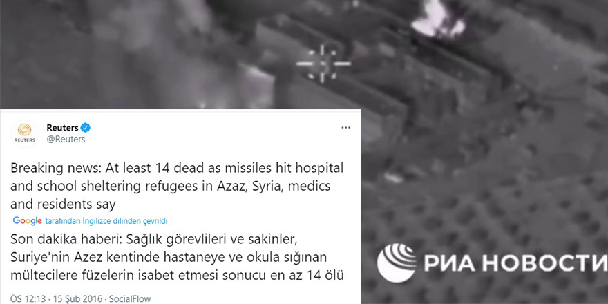 Suriye’nin Halep iline bağlı Azez bölgesinde bulunan bir hastanenin İskender füzeleri ile patlatıldığını Rusya Savunma Bakanlığı’nın paylaştığı görselde görmek mümkün.