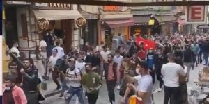 Suriyeli gençler Macron'un İslam karşıtı sözlerini protesto ederek Taksim'de yürüyüş gerçekleştirdi.