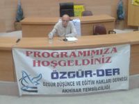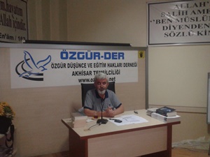 Özgür-Der Akhisar Temsilciliğinde düzenlenen programda Edremit'ten Nuri Zirek “İslamcılık, Gelenek ve Geleneksel Cemaatler” konusunu anlattı.