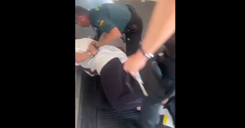 Uçakta bulunan yolcular, görevliler ve pilot da dahil olmak üzere herkesin tepki gösterdiği olayda, sorumlu siyonist öğretmen direnmesine rağmen ters kelepçeyle göz altına alındı.