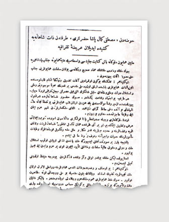 Sivas'ta çıkan İrade-i Milliye gazetesinin 14 Eylül 1919 tarihli ilk sayısında çıkan Mustafa Kemal Paşa'nın Vahdettin'e çektiği telgrafın orijinali.