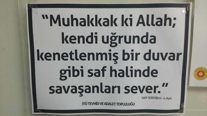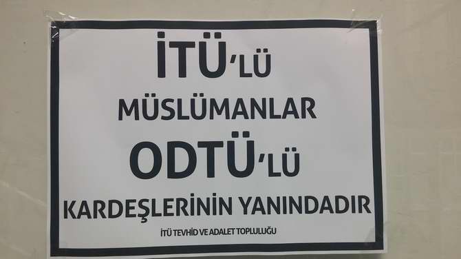 “Muhakkak ki izzet; ancak Allah’ın, Rasûlü’nün(s) ve mü’minlerindir.” (Münafikun:8) Biliyoruz ki, bugün İTÜ’ye cami yapılmasını engellemek maksadıyla her yola başvuran zihniyet ile ODTÜ’lü kardeşlerimize vahşice saldıran küfür, tek millettir. Kardeşlerimize ve diğer inançlara alenen saldıran zihniyete karşı kuşandığımız Müslüman kimliğimizle adaleti tesis etmek için hiçbir fedakârlıktan kaçınmayacağımızı bildiririz. Bu, birçok çevreden İslami duyarlılığa sahip Müslümanların, kardeşlerine bir çağrısıdır. “Şüphesiz Allah, O’nun yolunda, kenetlenmiş bir duvar gibi saf bağlayarak mücadele edenleri sever.” (Saff:4)