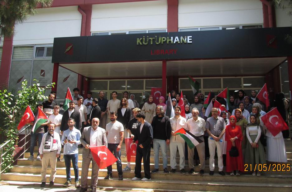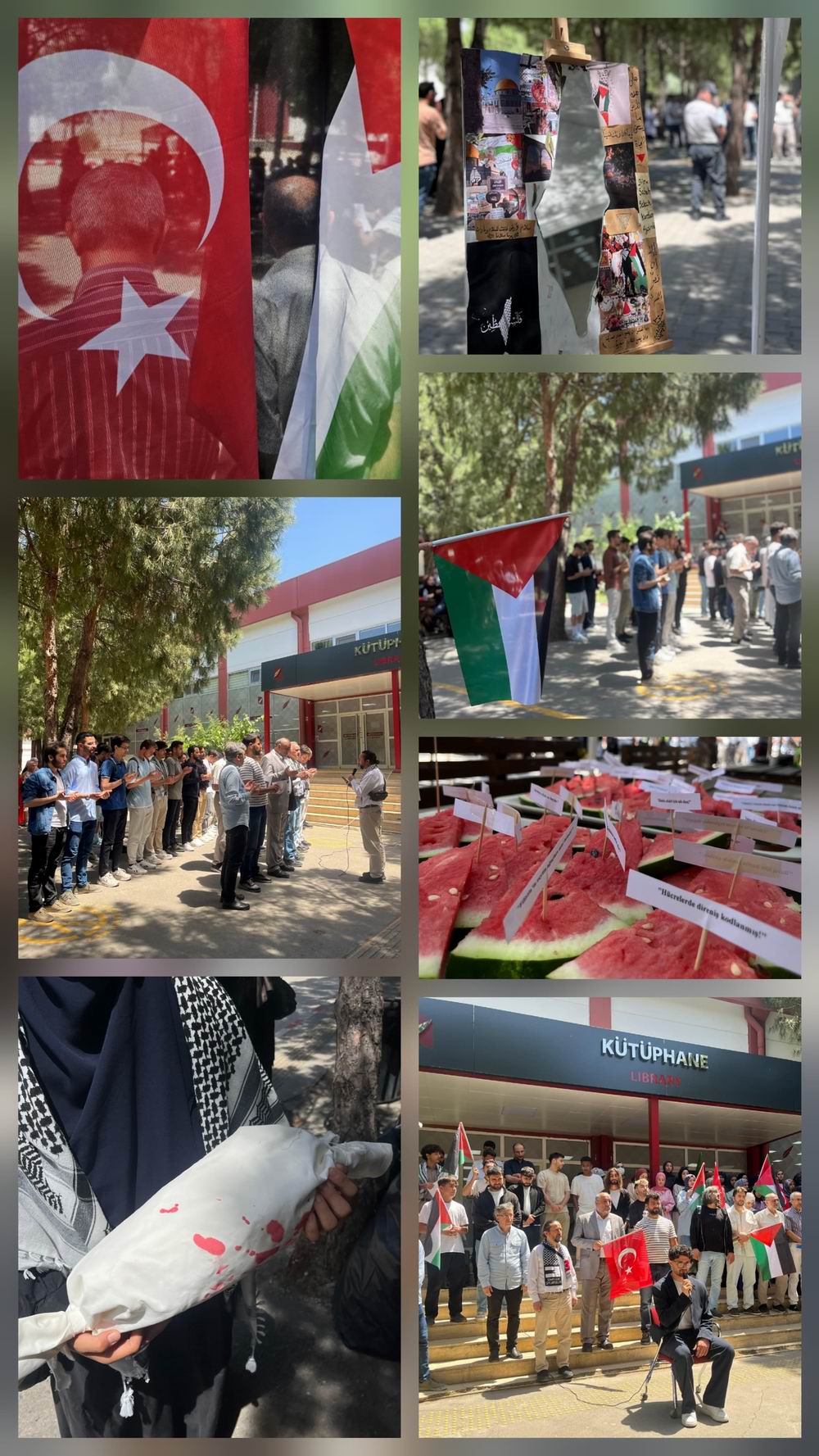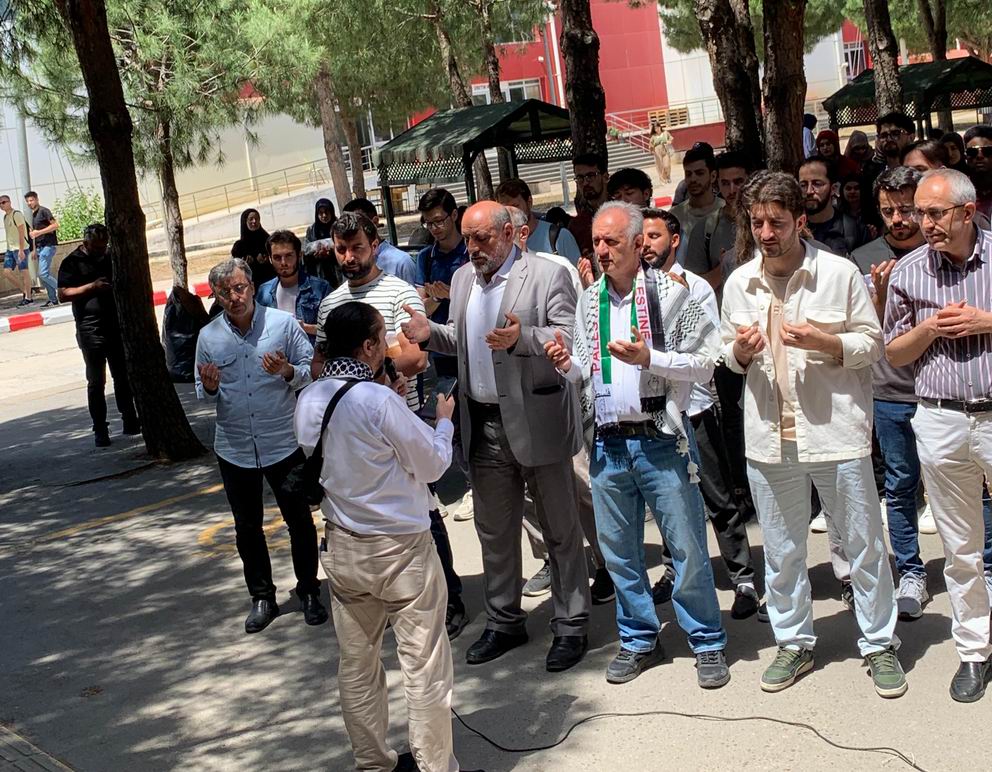 Ardından bu Gazze etkinliğinin gerçekleştirilmesinde öncü olan Yedi Hilal öğrenci topluluğunun danışmanı Prof. Dr. Murat Kayacan Gazze’de şehit olan Gazzeliler için gıyabi cenaze namazı kıldırıp dua etti.