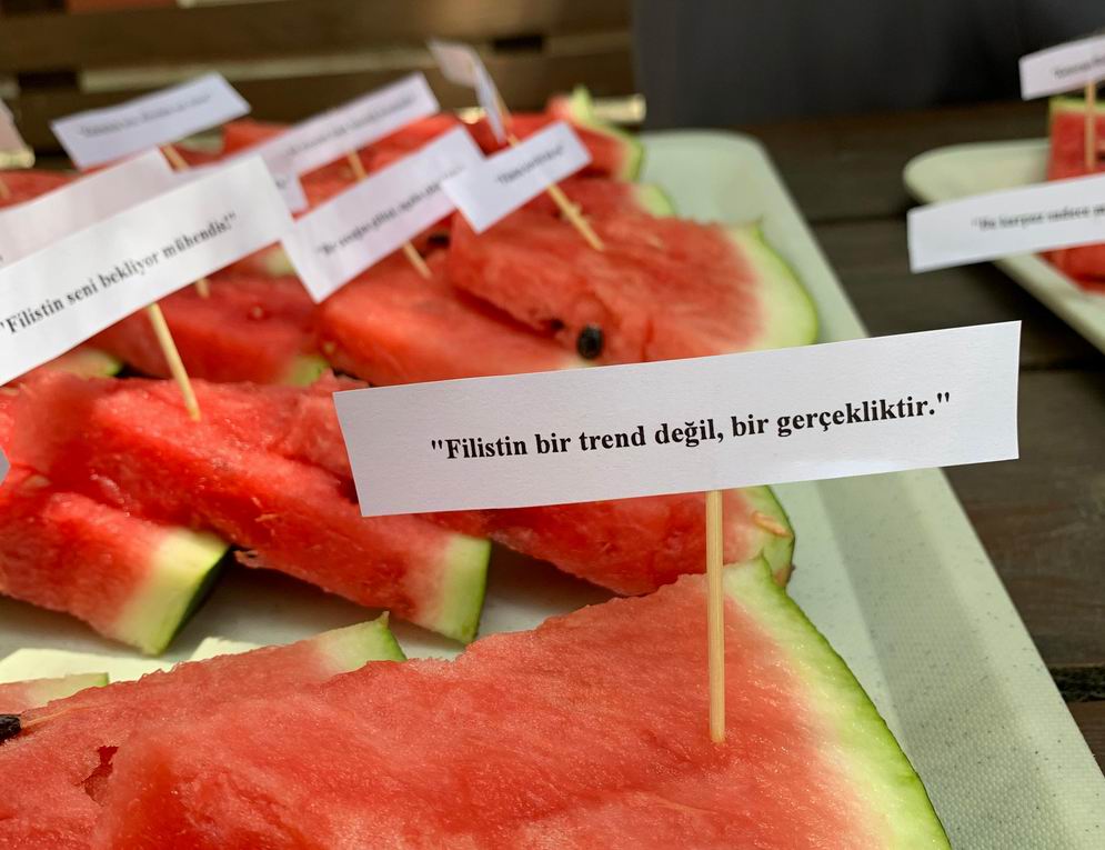 Saat 12.00’den itibaren gerçekleştirilen karpuz ikramı, karpuzun sadece bir meyve değil, Filistin’in direniş sembolü olduğunu bir kez daha hatırlattı. Eray Çakmak’ın Kur’an tilavetiyle kalpler dirilişe çağrılırken, Yasin Berkan’ın yaptığı basın açıklaması kampüsten tüm dünyaya açık bir çağrıydı: “Sessiz kalmak, zulme ortak olmaktır!”