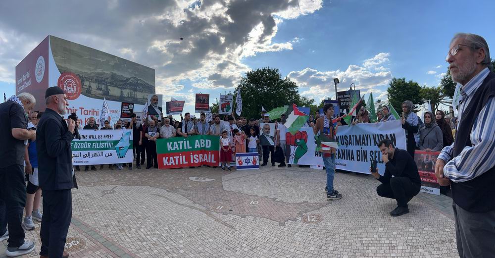 Siyonist işgal çetesine yönelik tepkiler sürerken İzmirli Müslümanlar da Gazze direnişini selamlamak için Konak Meydanı'nda toplandı. Hamza Akdeniz’in sunuş konuşmasından şu hususlar dikkat çekildi.