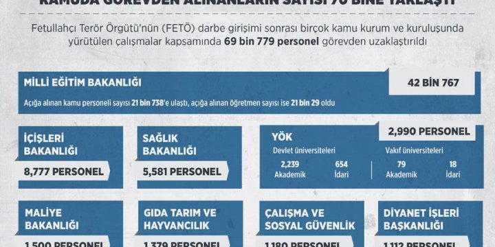 Darbe girişimi sonrası birçok kamu kurum ve kuruluşunda 51 bin 332 kamu çalışanı görevden uzaklaştırıldı.