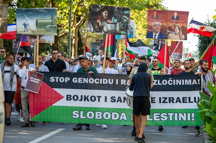 Karadağ'ın başkenti Podgoritsa'da toplanan yüzlerce kişi işgal rejimin Filistin'e yönelik devam eden saldırılarını protesto etti.