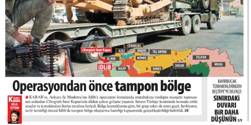 Daha ilginci ise bilhassa İdlib’e operasyon konusunun uzun bir zamandır Karar’da ısrarla gündemleştirilmesi. Hemen hepsi Hilal Öztürk imzasını taşıyan bu haberlerde Türkiye’nin İdlib’e askeri operasyon yapacağına dair iddialar tekrarlanıp durmakta.