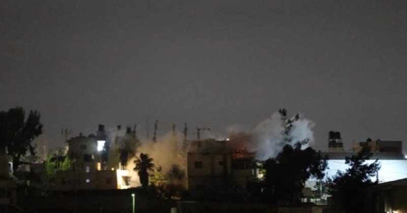 Çevredeki evlerin sakinlerini zorla dışarı çıkaran işgal askerleri, Sabarine ailesine ait 3 katlı evin en üst katını havaya uçurdu.