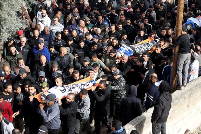 İşgal askerlerinin kurşunuyla öldürülen Filistinlilerin naaşları Sabit Sabit Hastanesi'nden alınarak, kent mezarlığında toprağa verildi. Cenaze törenine binlerce Filistinli katıldı.