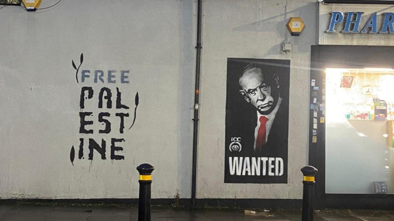 Uluslararası Ceza Mahkemesinin yakalama kararı çıkarmasının ardından "Aranıyor" ifadesi yer alan Netanyahu afişleri, İngiltere sokaklarındaki duvarlara asıldı.